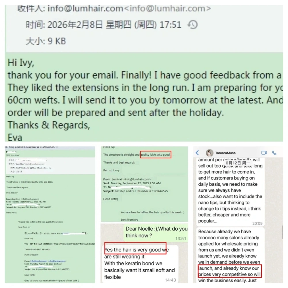 Lum Hair’s clients spread across the UK, USA, Canada, Australia, Denmark, New Zealand, Norway, Germany, France, the Netherlands, Sweden, Poland, the Czech Republic, Slovakia, etc. Ivy, as a sales manager, can speak fluent English for good communication.
