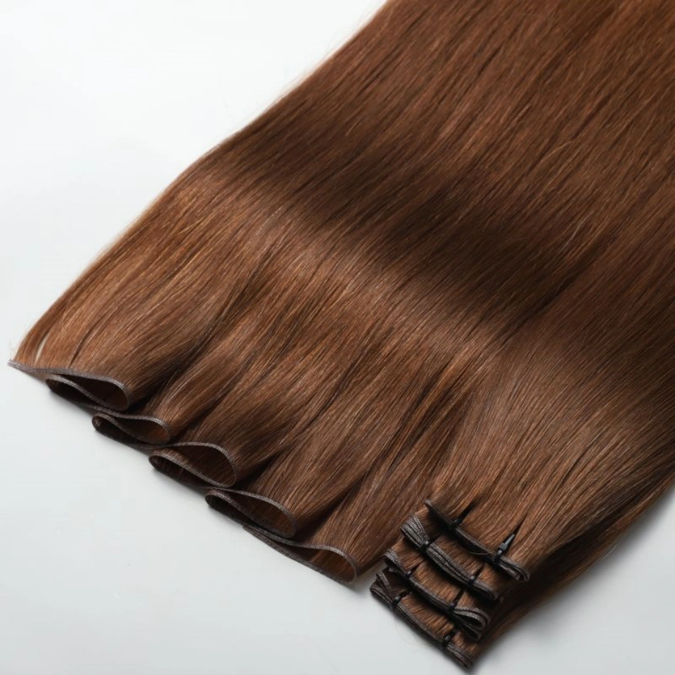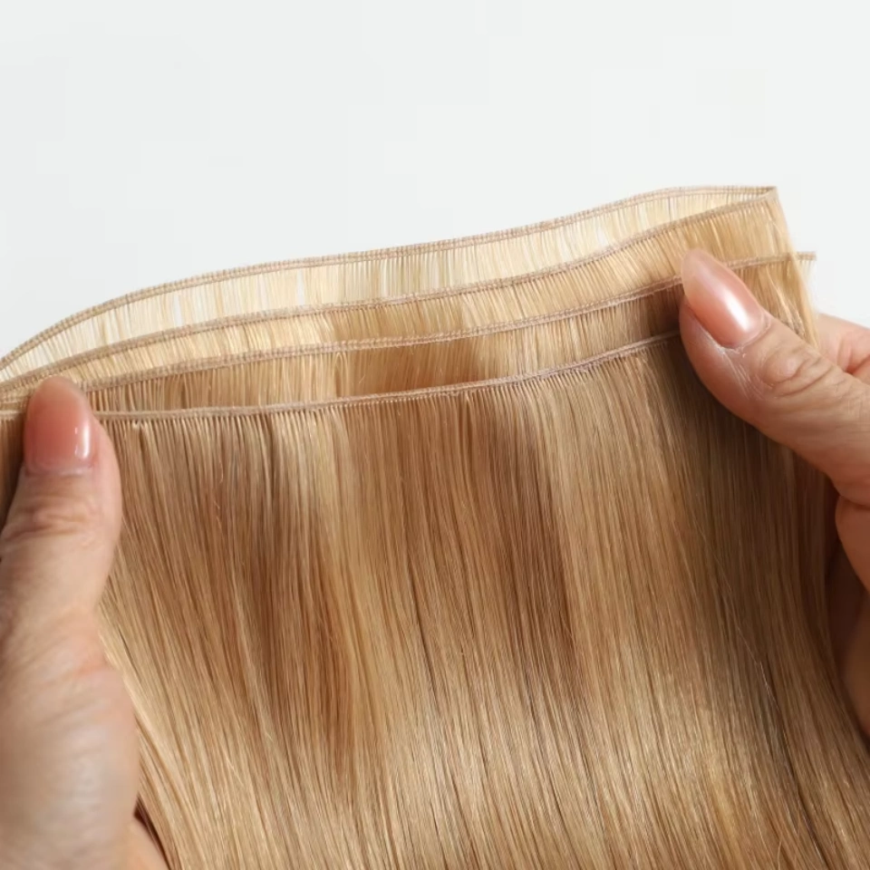 The weft track is incredibly flat, measuring only 2mm wide, making this design ideal for thin to medium hair types compared to machine-made wefts. Choose us as your hair extension supplier and enjoy the freedom to customize every hair extension style.